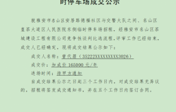 一、基本情況安居路德福社區與交警大隊之間(約10000平方米,已完成水泥地面硬化約5000平方米,其余為碎石硬化)、皇茶大道區人民醫院東側(約6200平方米,已完成水泥地面硬化)兩處臨時停車場,已完成配套道閘、監控、門衛室、廁所的建設。上述兩處停車場性質為臨時停車場,無固定使用時間期限,如遇政府對上述2處臨時停車場有新的規劃使用方案,則隨時由我公司收回交由相關單位進行處置。現公司擬對上述兩處臨時停車場一并對外招租。二、招租要求(一)承租方負責現場其設備設施的日常管理維護,并承擔安全生產和安保責任,負責門前三包所有區域的衛生管護。以上所產生費...